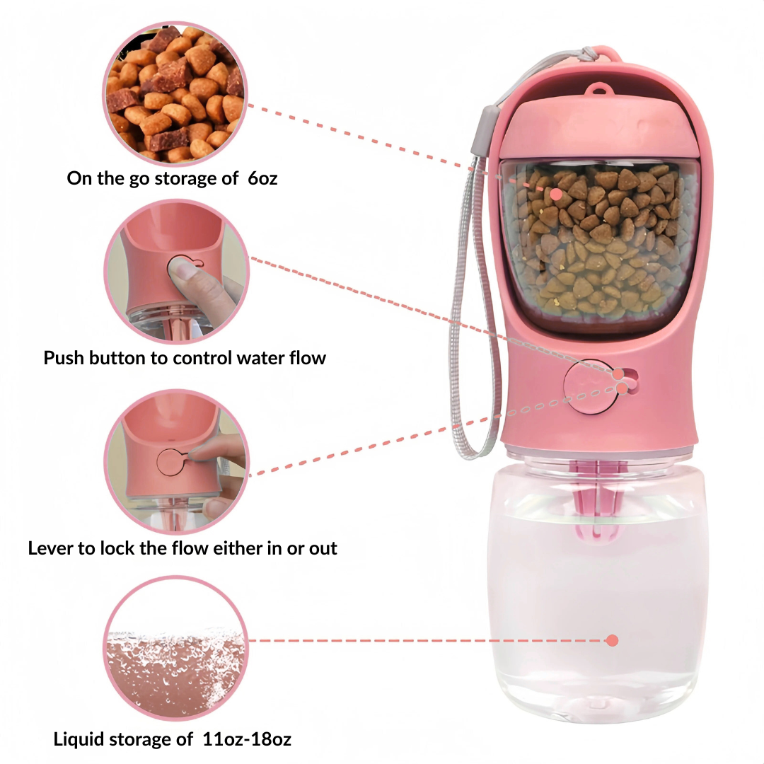 Our all-in-one bottle makes carrying food and water simple on the go. No spills, no wasted drops just fresh sips and quick snacks, right when your best friend needs them. Lightweight, leak-proof, and easy to carry, it’s the travel essential every pet parent will love.